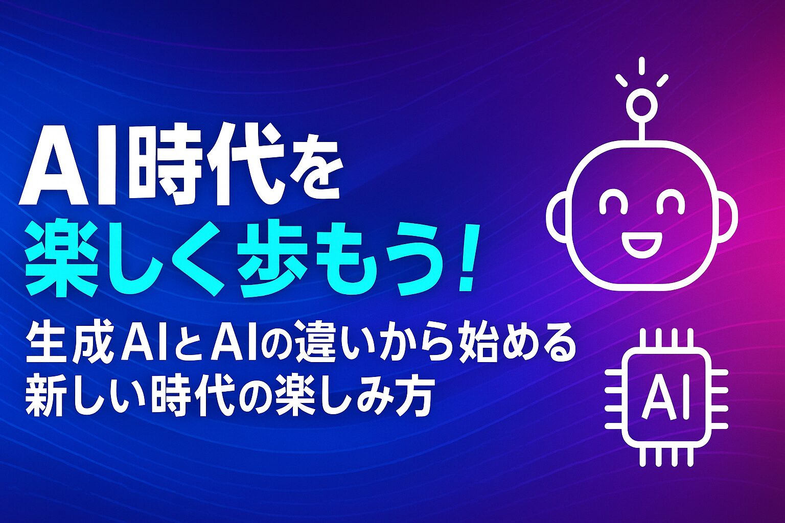 「AIが仕事を奪う」「AIに負けてしまう」そんな不安を抱いている人も多いかもしれません。しかし、AI時代は決して恐れるものではありません。むしろ、新しい可能性に満ちた楽しい時代なのです。今回は、中学生でもわかりやすく、生成AIとAIの違いから始めて、AI時代を楽しく歩む方法をご紹介します。